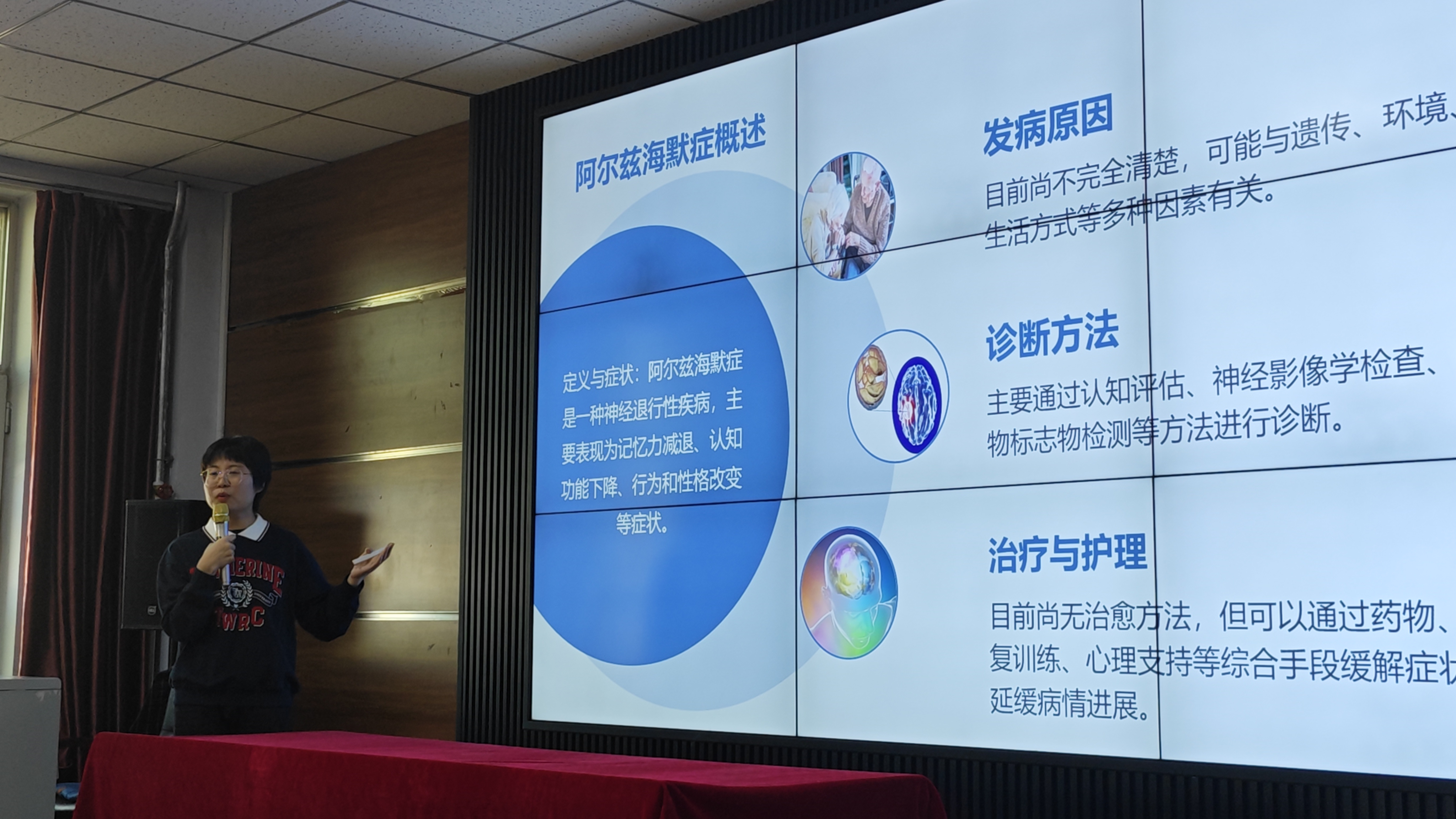 随着社会老龄化的不断加剧,阿尔兹海默症成为当今比较重要且热门的话题。2024年11月19日公司组织举办了主题为“阿尔兹海默症的过去,现在和未来”的学术讲座。公司科研处王立哲科长及公司专任教师和员工参加了本次讲座。