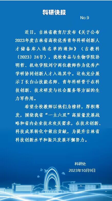 公司孙明哲老师入选吉林省高校优秀青年科研创新人才储备库