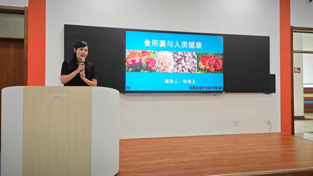 主讲人张春玉围绕食用菌简介、食用菌活性物质提取研究现状及发展趋势、食用菌产品开发现状及发展趋势及未来展望和大家做了详细的分享。