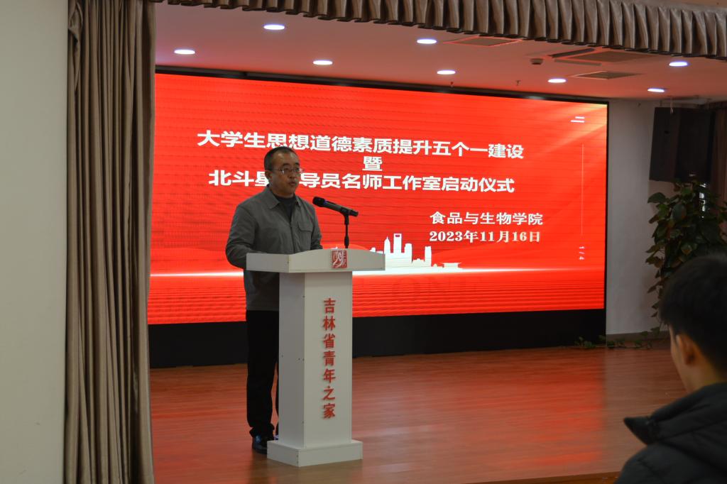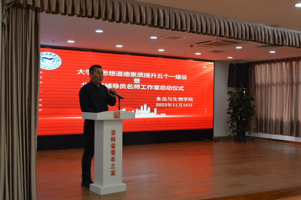 为推动公海赌赌船官网jc710辅导员队伍专业化、职业化、专家化发展,全面提升食院辅导员队伍整体素质,切实提高老员工思想政治教育工作实效,打造食院员工工作品牌和特色,公海赌赌船官网jc710启动老员工思想道德素质提升五个一建设暨北斗星辅导员名师工作室建设项目,活动于2023年11月18日在吉林省青年之家隆重召开。公司员工处处长谈小平、思想政治理论教研部部长李亚茹、员工处副处长冷柏迁、副处长迟海波,公司党总支书记包雅馥、副经理张庆延、员工科科长韩立国及全体辅导员老师参加了启动仪式。