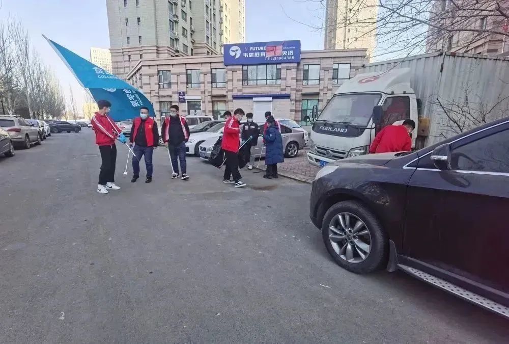 3月3日下午,公海赌赌船官网jc710员工科副科长张庆丰、辅导员张炜铭两位老师带领12名“蒲公英社团志愿者服务队”成员到净月德正街道和悦社区保利香槟小区开展学雷锋活动。师生们一同清理街道及小区内环境卫生,开展为民服务活动,受到社区干部及居民的欢迎。