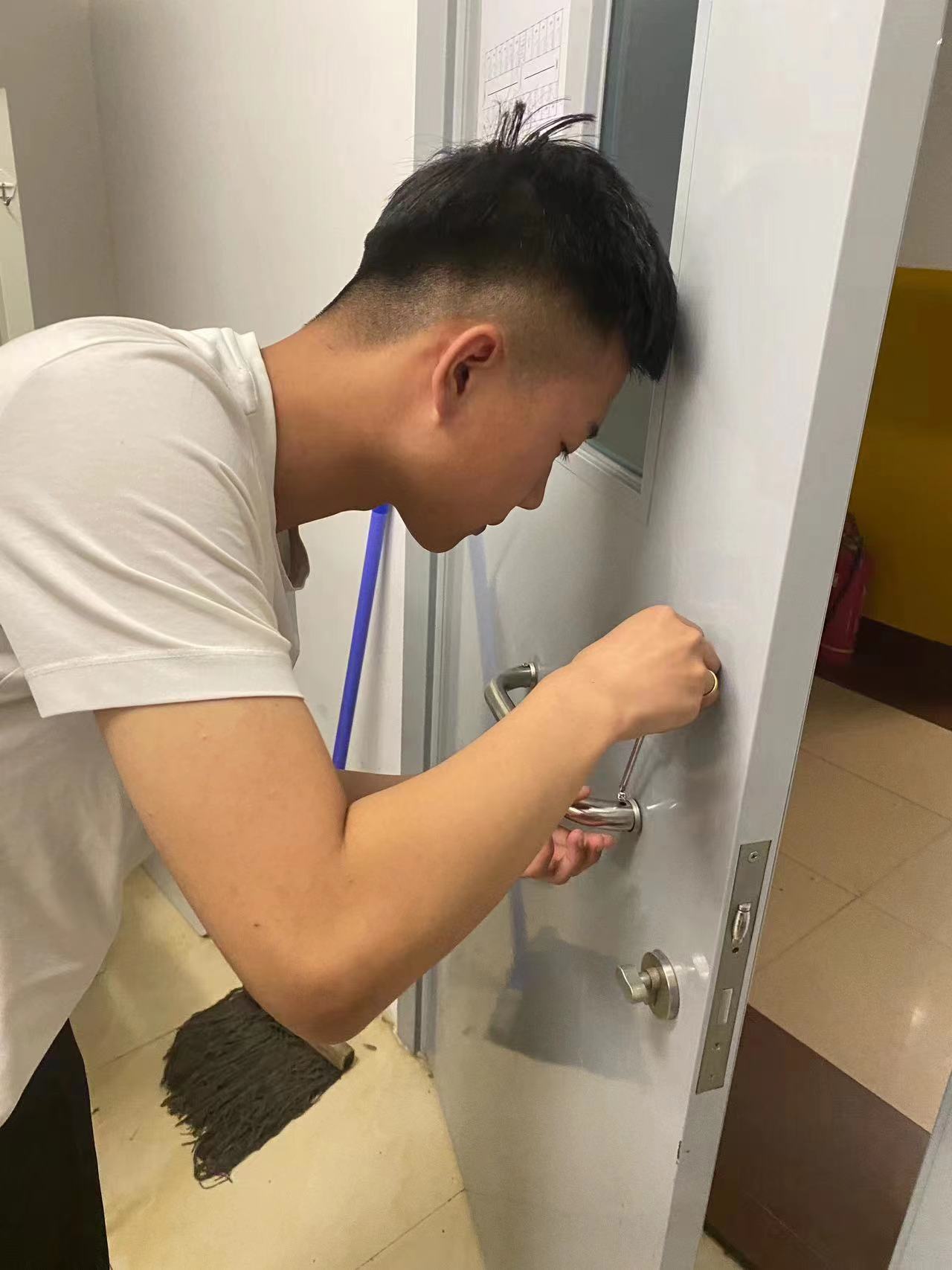 互助社团帮助同学修理门把手