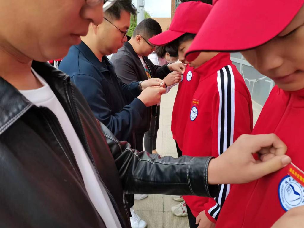 老师们为互助社团成员佩戴徽章