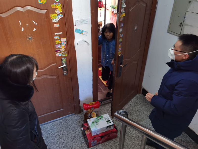 按照公司党委“两节”前后开展包保街道独居空巢老人关心关爱行动的工作安排,公司党总支负责净月开发区福祉街道潭西社区望月山庄、壹英里两个小区10位独居老人的包保工作。1月2日上午,党总支组织党员到包保的独居老人家里慰问,了解独居空巢老人的基础病症、感染情况、生活状况,送上米、油、奶、水果等慰问品,表达全体党员的关心和爱心,配合社区做好独居空巢老人身体健康、生活保障工作。