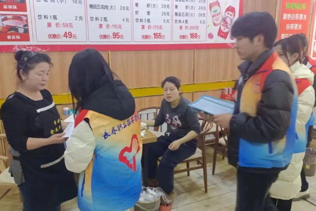 活动期间,结合专业特色一部分党员同志带领员工为沿街商铺发放“食品安全“”药品安全“宣传单,并向其讲解重要性。