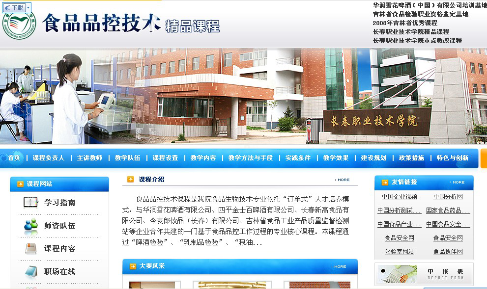 食品品控技术课程是国家示范性重点建设专业——生物技术及应用专业(群)——食品生物技术专业的一门核心课程,是按照食品生物技术专业培养目标以及食品生产企业品控岗位职业能力的要求,与华润雪花啤酒(中国)有限公司各所属公司、长春新高食品有限公司、今麦郎饮品(长春)有限公司等企业共建的课程。本课程以“化学基础与实验技术B”、“分析化学”、“生化与微生物基础”课程为基础,同时,与后续的 “顶岗实习”相衔接,共同培养员工在食品品控岗位的专业核心能力。