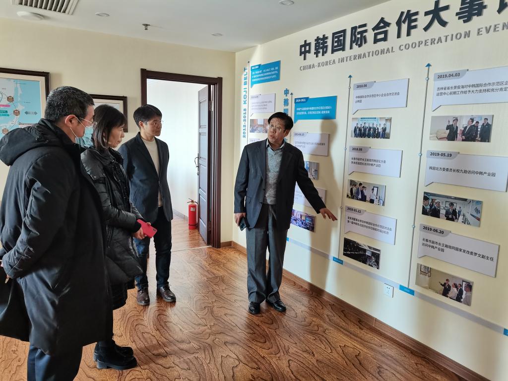 在长春中韩产业园管理股份有限公司,徐经理一行参观了中韩食品创新中心,听取了中韩产业园管理股份有限公司总裁张利民关于产业园的介绍。经过洽谈,双方将在校外实习实训基地、功能性食品生产研发、检验检测等多个方面进行深入合作。